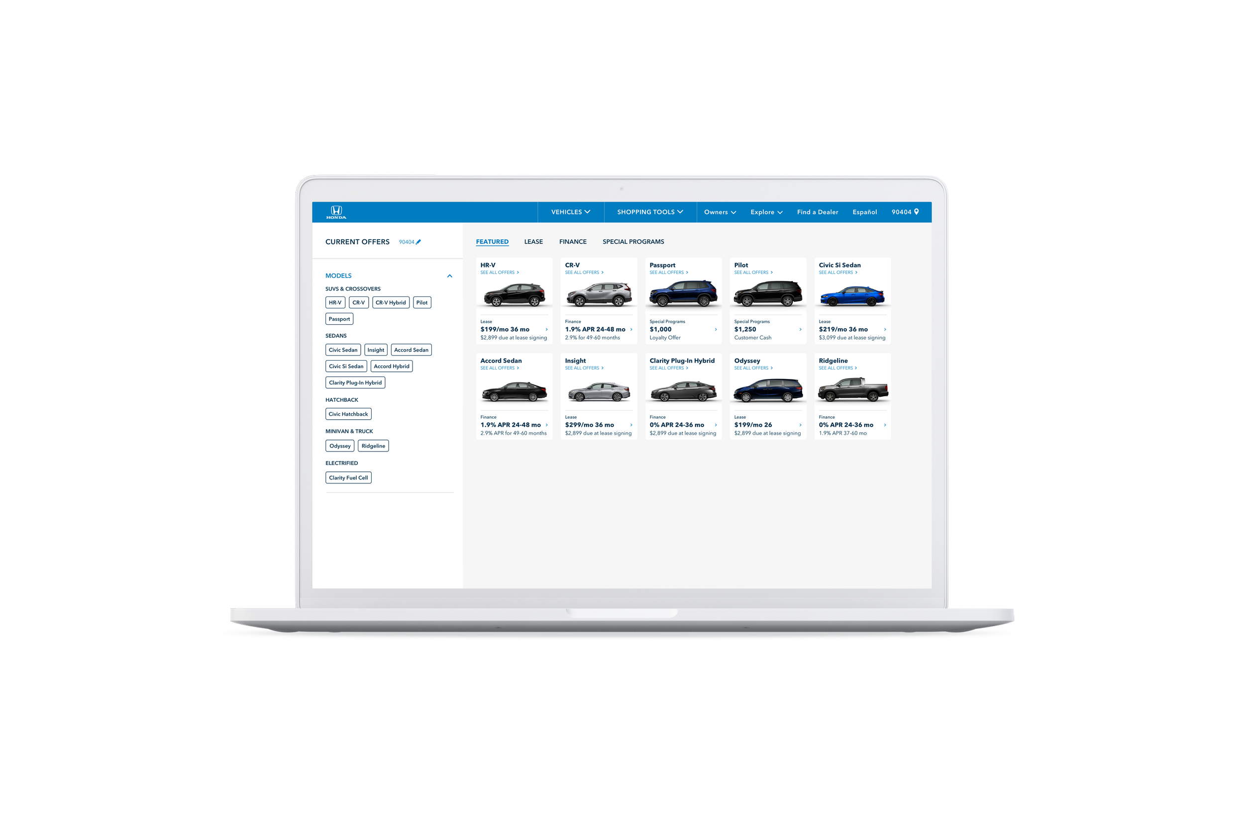Honda’s Current Offers tool allows users to view all vehicle’s available offers. I helped redesign the user experience and visuals.